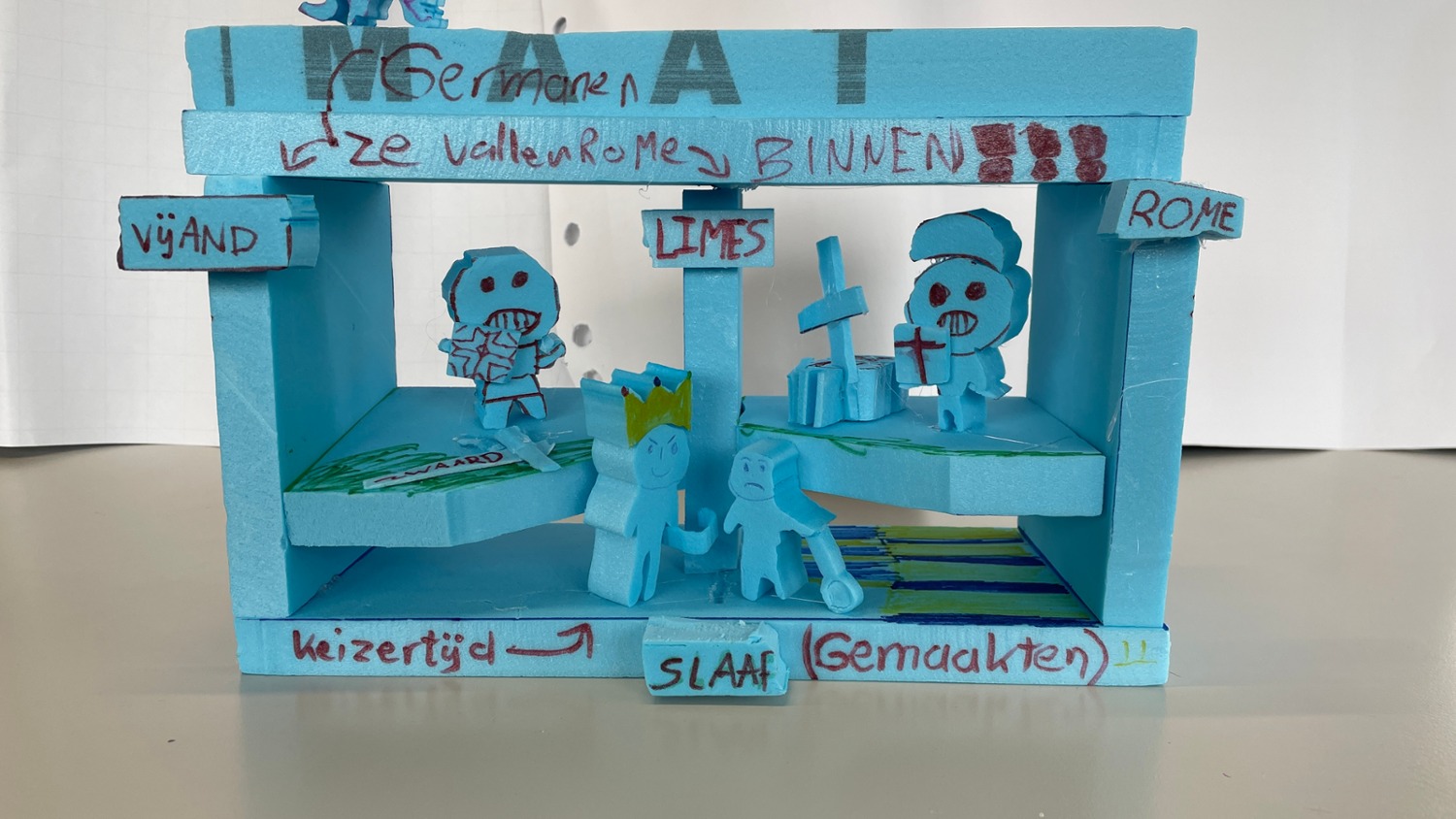 Zo vlak voor de vakantie is bij het vak W&T een prachtig project afegrond met de eerste klas. De opdracht? Het bouwen van een geheugenpaleis waarmee leerlingen de belangrijkste onderwerpen van een schoolvak konden onthouden én visualiseren. Op basis van de toetsweekstof van Nederlands, geschiedenis, aardrijkskunde of biologie gingen de leerlingen creatief aan de slag. En met resultaat! Er zijn originele, doordachte en verrassend mooie geheugenpaleizen gebouwd.