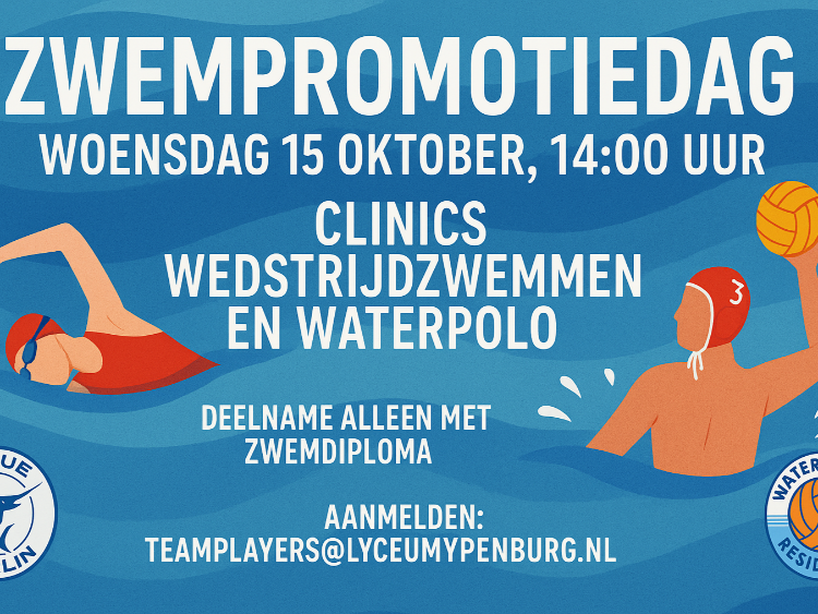 Op woensdagmiddag 15 oktober a.s. vindt er in zwembad het Hofbad een speciale zwempromotiedag plaats voor leerlingen uit de onderbouw VO. Vanaf 14.00 uur zijn er leuke en uitdagende clinics in wedstrijdzwemmen en waterpolo, georganiseerd door Blue Marlin en de Waterpolo Residentie.